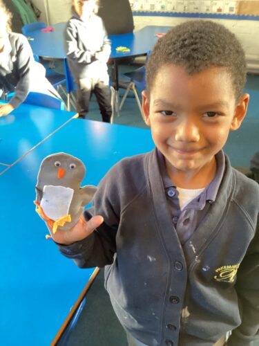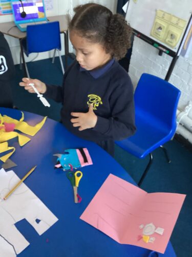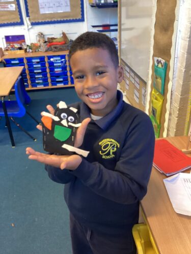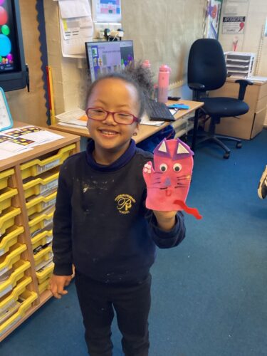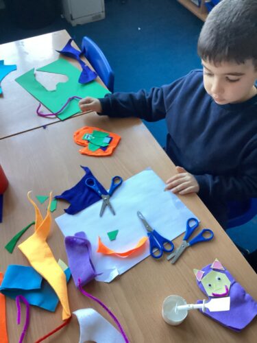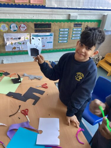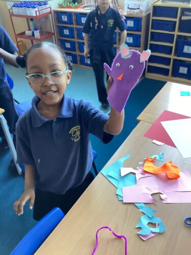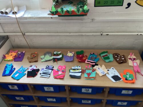 of their choice – pinning, stapling or gluing. They then explored a range of materials to add features such as eyes, fur, wings, and tails, bringing their puppets to life. Fantastic work!