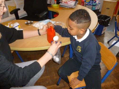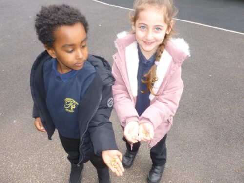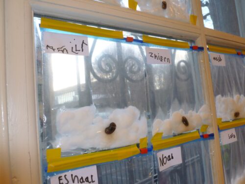 The children in reception have been reading ‘Jack and the Beanstalk’ as part of their ‘Traditional Tales’ topic. On Monday they arrived at school to see a giant video of a beanstalk growing in our playground! We explained that Steve had cut it down over the weekend to make sure the children were safe. They had lots of fun hunting for any remaining evidence and then planted their own beans!