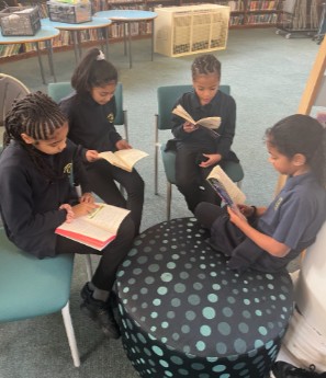 Years 3 and 4 have begun their library visits this year. This week it was Olive Class’s turn. The children chose books, spent time reading, and enjoyed exploring the library.