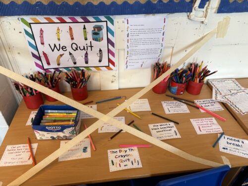 In Year 1 and Year 2, the children discovered that all of their crayons and colours had quit!