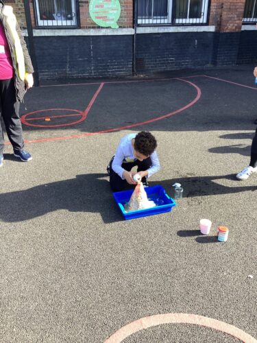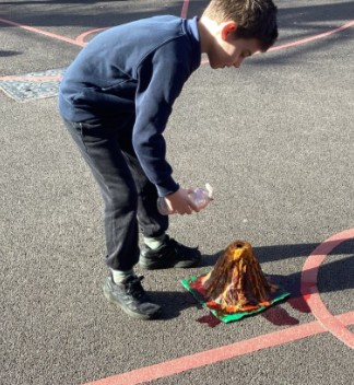 In Year 3 and Year 4, the children made a volcano erupt.